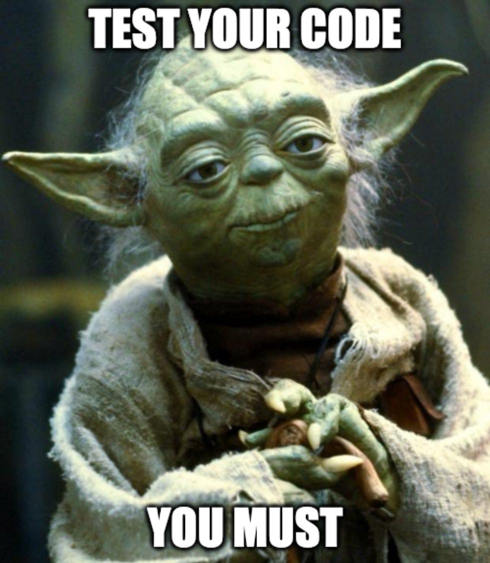 It’s easy to forget about testing when first learning to code. It’s not like anyone will grade you on your test-writing skills, right 👀? But if something goes wrong with your code in production, it can be a real pain in the ass to figure out why.